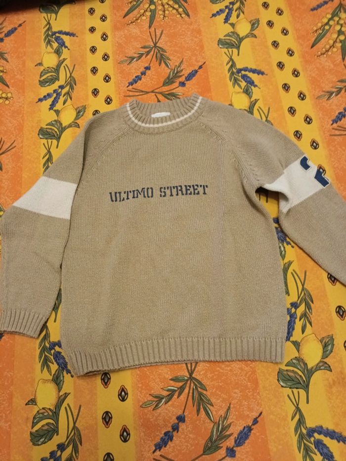 vsalvat5142Pull Garçon Taille 6 ans Couleur beige et blanc Marque pocopiano Très bon etat