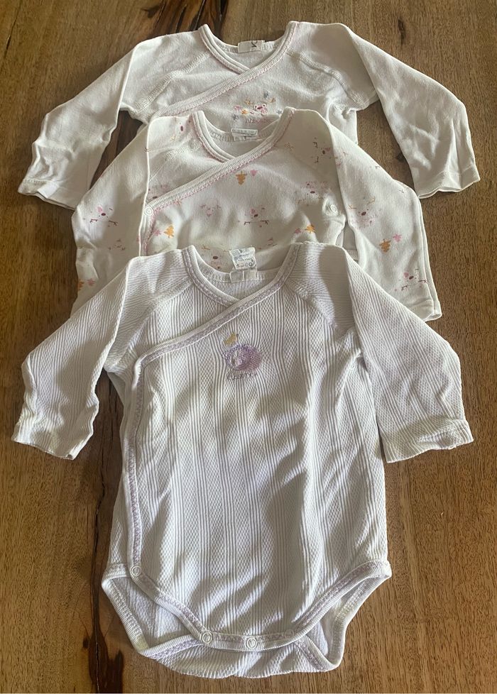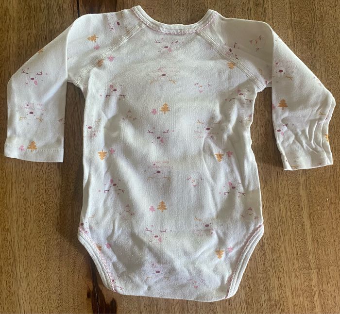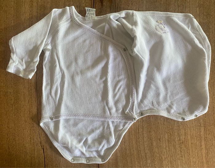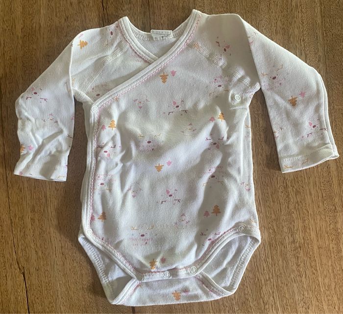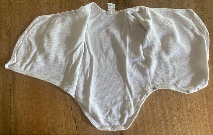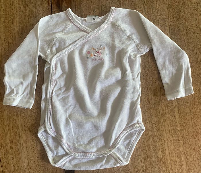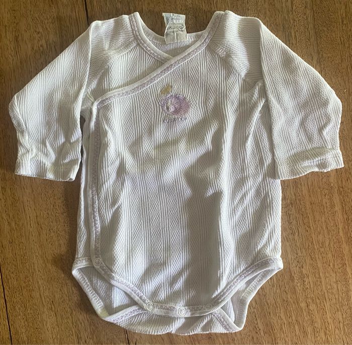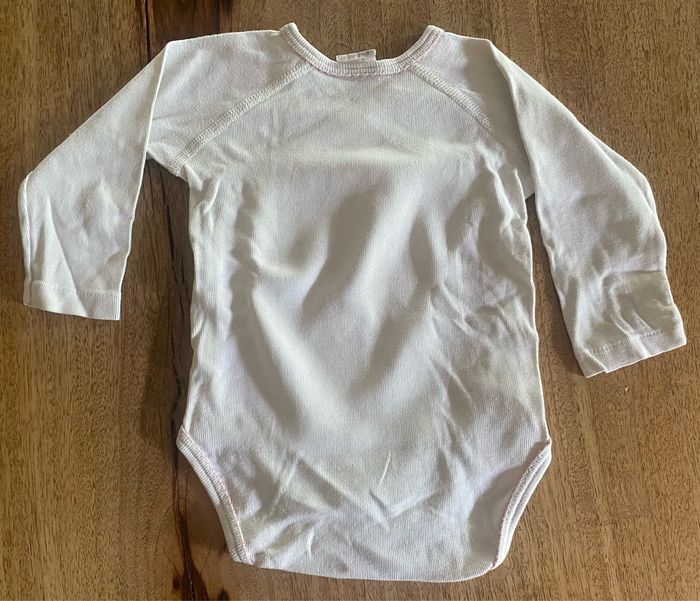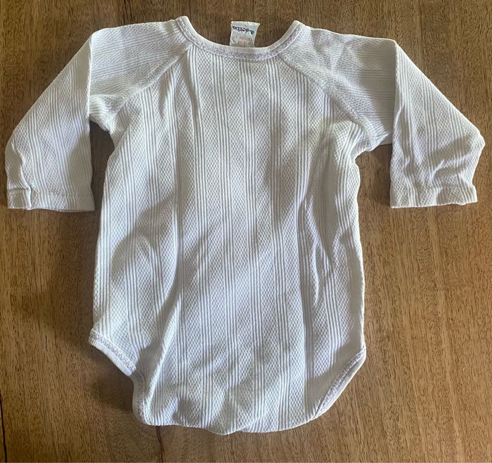 3body à manches longues qui s’ouvre entièrement avec 4 pressions et 3 pressions en bas du body. Sans tache