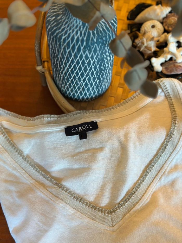 T-shirt Caroll Paris en lin blanc, Liseré argenté taille L - photo numéro 2