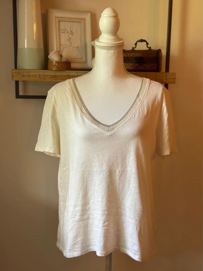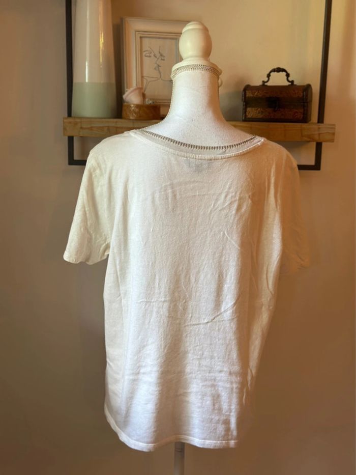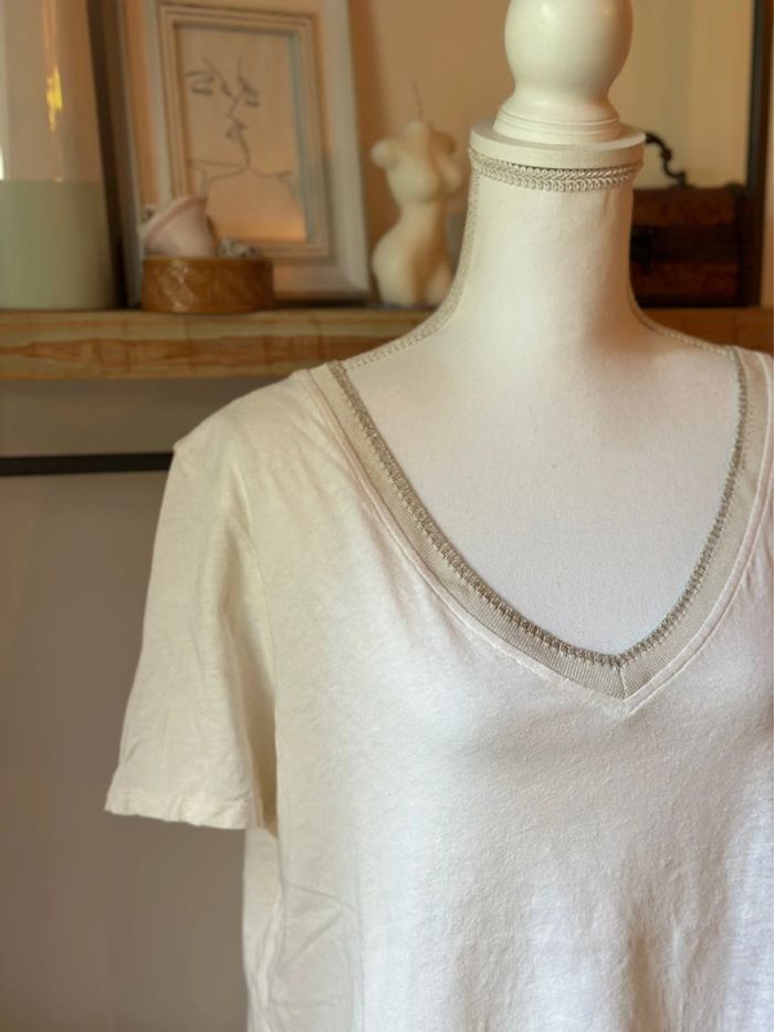T-shirt Caroll Paris en lin blanc, Liseré argenté taille L - photo numéro 6