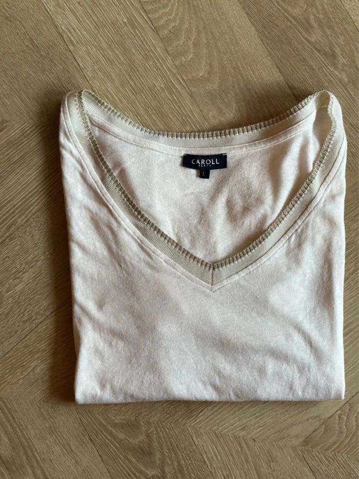 T-shirt Caroll Paris en lin blanc, Liseré argenté taille L - photo numéro 1