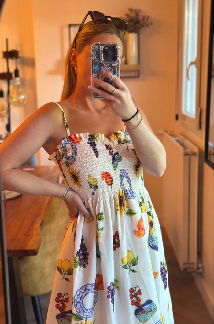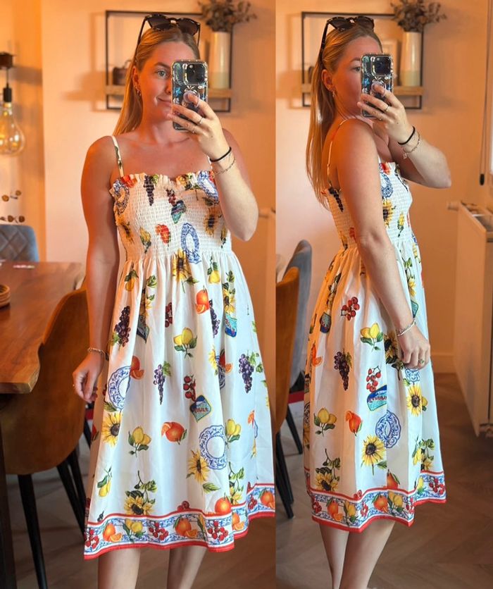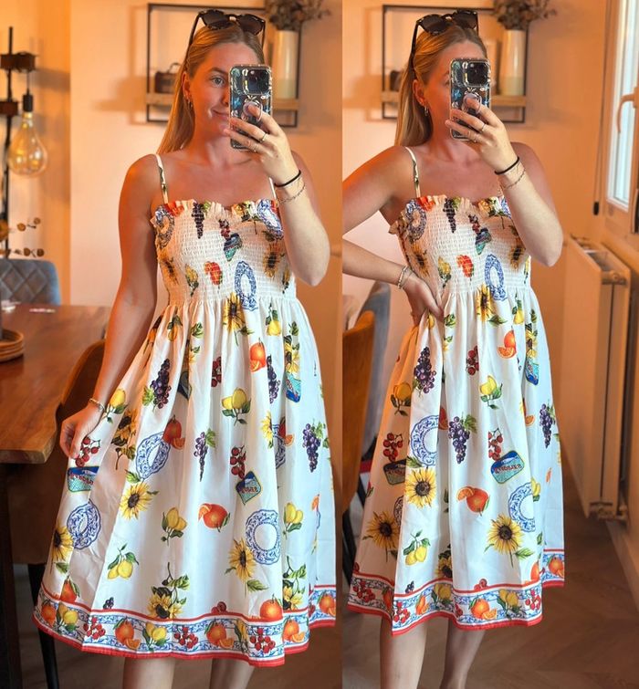 Robe d’été mi-longue imprimé fruits colorés – Made in Italy – Taille S - photo numéro 2