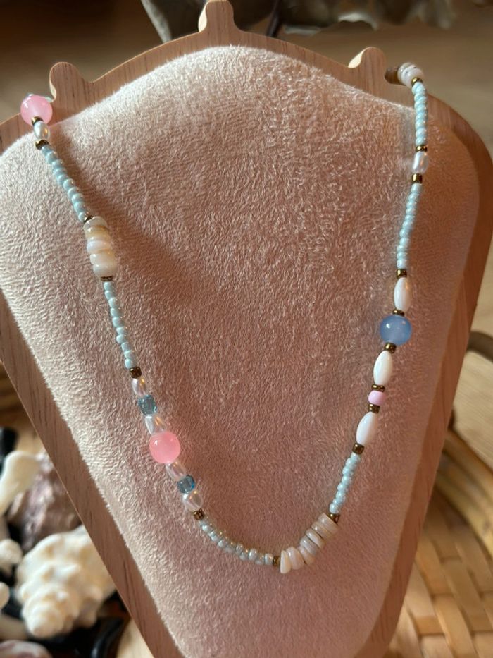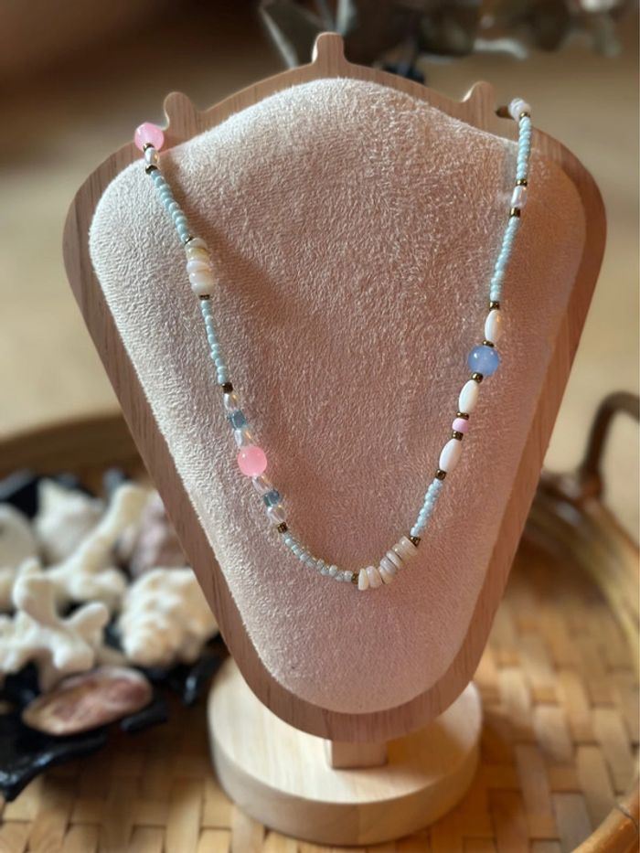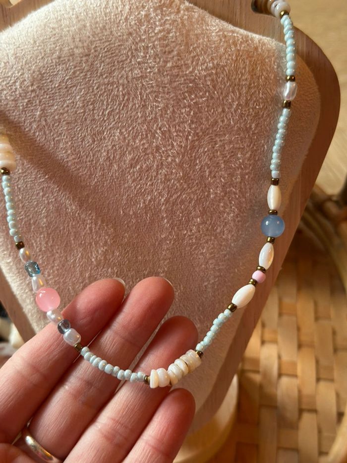 Collier en perles naturelles colorées et perles d’eau douce (acier inoxydable), neuf - photo numéro 3