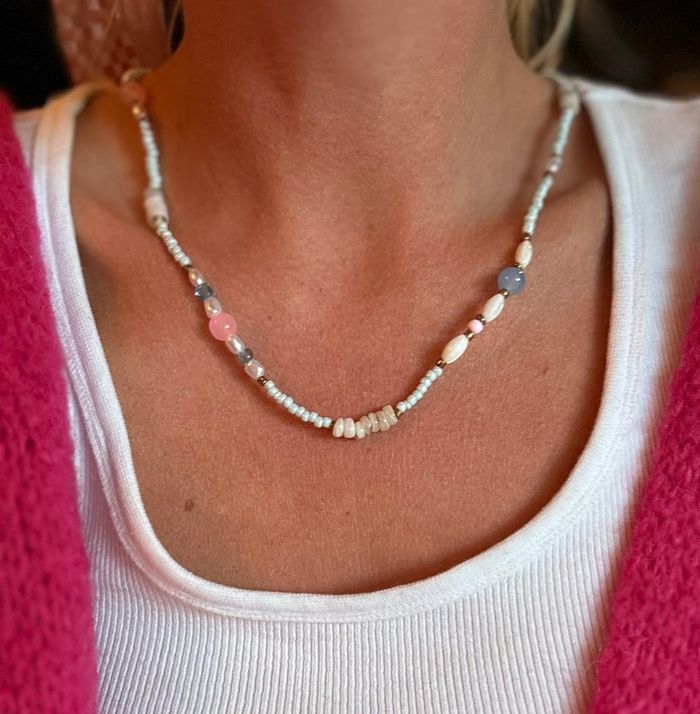 Collier en perles naturelles colorées et perles d’eau douce (acier inoxydable), neuf - photo numéro 1