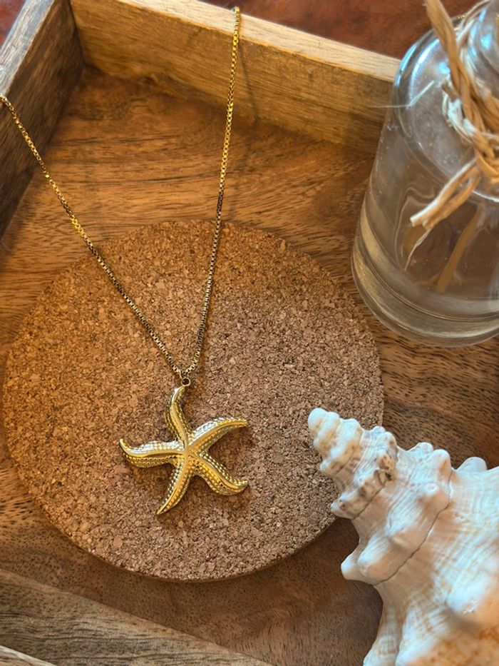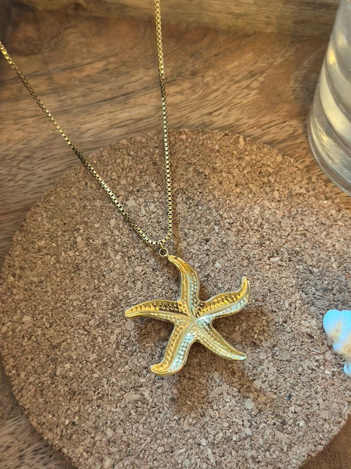 Collier doré étoile de mer en acier inoxydable plaqué - photo numéro 1