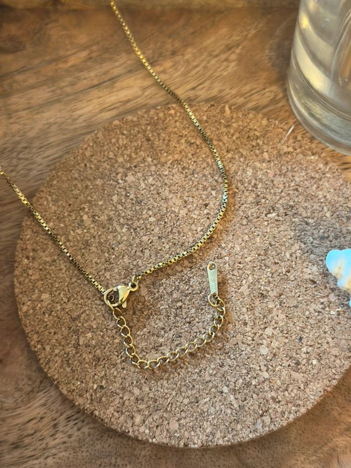 Collier raffiné en acier inoxydable 316L, plaqué or 18K (technique PVD), avec pendentif étoile de mer texturé. Résistant à l’eau, ne noircit pas et ne déteint pas. Idéal pour un look chic et estival. Détails : • Longueur chaîne : 39 cm + 5,5 cm d’extension • Taille du pendentif : 3,5 cm • Poids : 5,5 g • Neuf, jamais porté