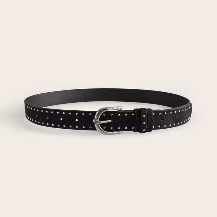 tes tenues avec cette ceinture en daim couleur noire , ornée de petits clous discrets et d’une boucle dorée élégante. Idéale à porter sur un jean, un short ou une robe, elle s’adapte aussi bien à un look décontracté qu’à une silhouette plus travaillée. • Longueur totale : 100 cm • Largeur : env. 2,8 cm • Couleur : camel • Boucle : métal doré • Matière : imitation daim doux et souple