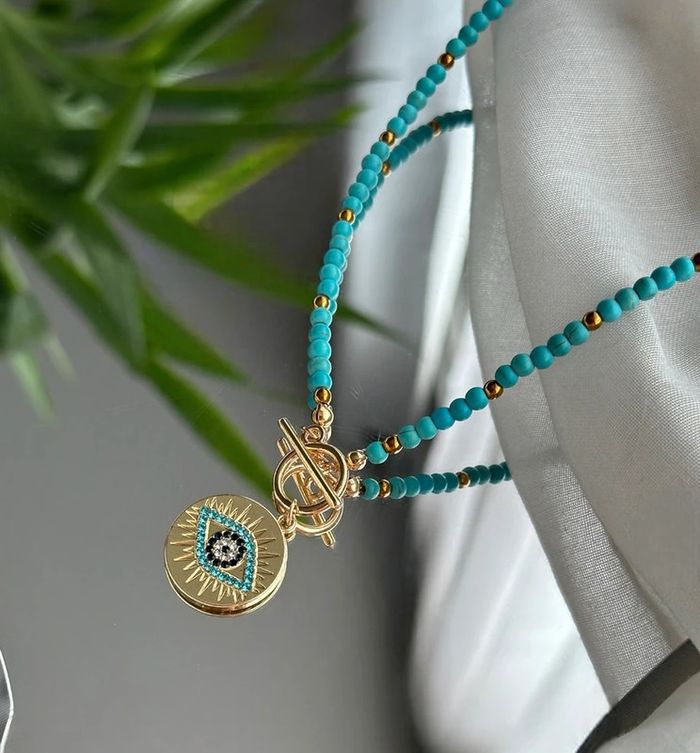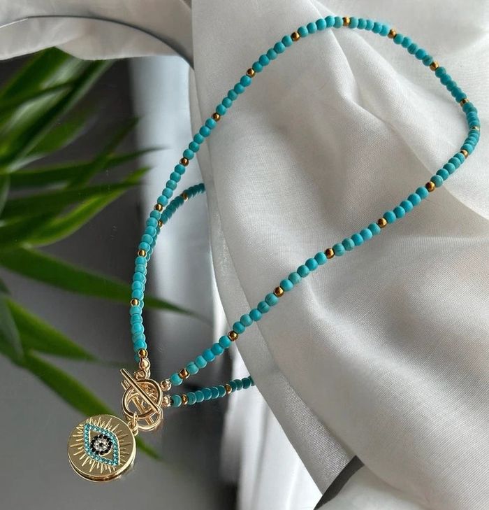Collier tendance en perles multicolores avec pendentif œil protecteur doré. Fermoir en T très pratique et élégant. 🧿 • État : neuf, jamais porté • Matière : acier inoxydable (résiste à l’eau, ne noircit pas) • Longueur : 40 cm • Style bohème chic, parfait pour l’été ou pour ajouter une touche colorée à votre tenue. ℹ️ Le prix est fixe et il n'est pas éligible à la remise.