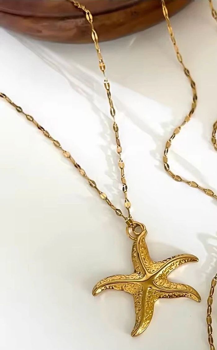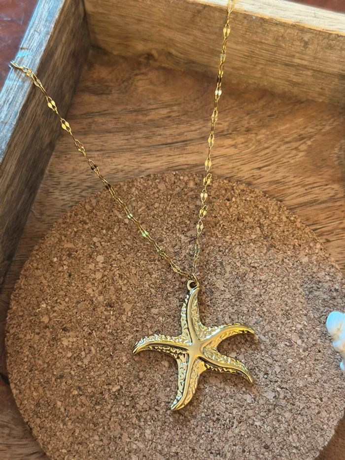Collier doré étoile de mer en acier inoxydable plaqué - photo numéro 1