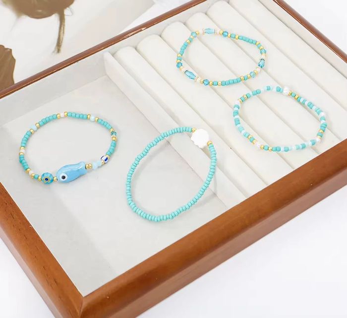 Lot de 4 bracelets perles bleu & doré – style bohème été, neufs - photo numéro 3