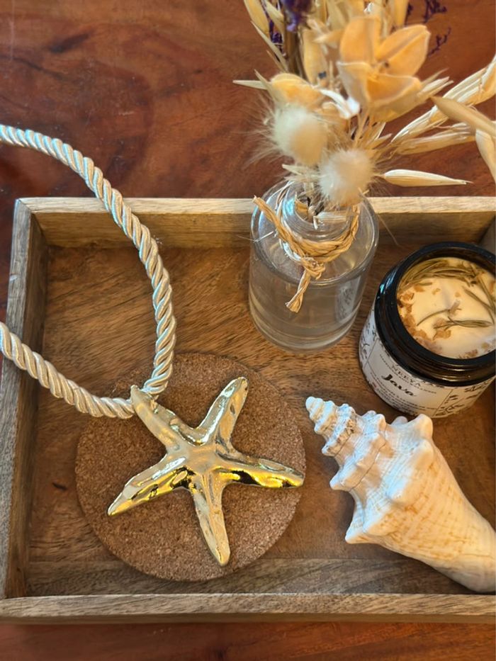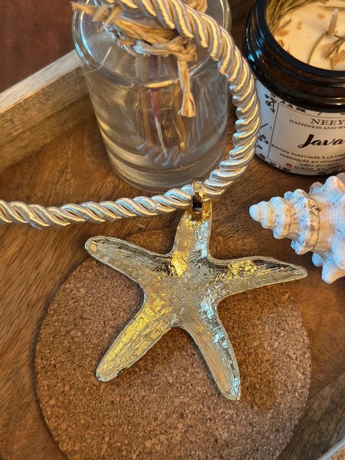 Collier corde blanc et pendentif étoile de mer doré - Zara - photo numéro 1