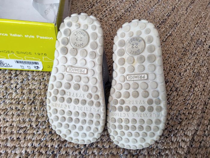 Sandales Primigi pointure 22 achetees 38€ chez Spartoo Peu portées très bon état général Modele 202313860622001 conseillé par podologue. Si les petits princes de la maison font leurs premiers pas en été, il est conseillé de porter des sandales avec le dos fermé et le rembourrage de cheville. Ces mesures vous permettent d’assurer le bon soutien et la bonne protection lorsqu’il fait trop chaud pour porter des chaussures fermées. Ces sandales au goût sportif ont également un bout large et arrondi pour laisser aux doigts l’espace nécessaire pour bouger. La semelle ultra-flexible est conçue pour garantir une bonne adhérence au sol.