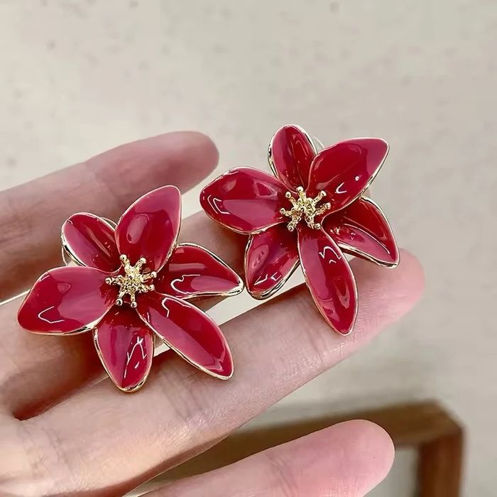 Faites sensation avec ces magnifiques boucles d’oreilles en forme de fleurs exotiques, idéales pour un look coloré, original et affirmé. Détails : • Forme : Fleur tropicale à 6 pétales • Couleur : Rouge intense avec détails dorés • Taille : Environ 3,7 cm x 3,1 cm • Poids : Environ 10,7 g par boucle • Fixation : Tige (pour oreilles percées) • État : Neuf, jamais porté Parfaites pour l’été, un mariage, une soirée ou simplement pour illuminer une tenue casual !