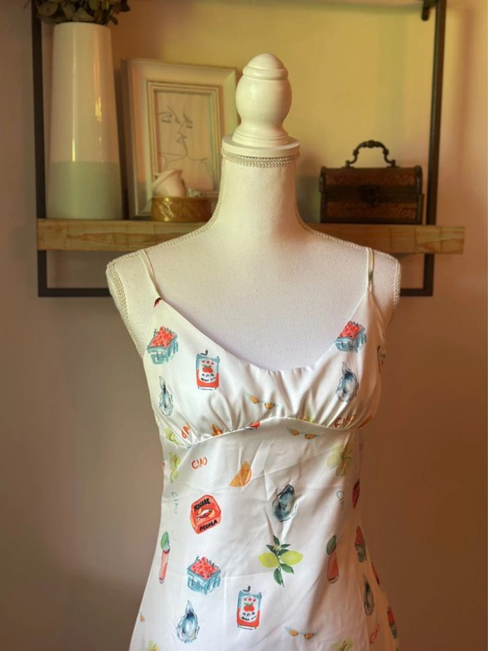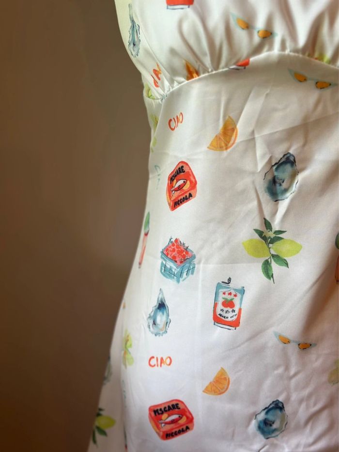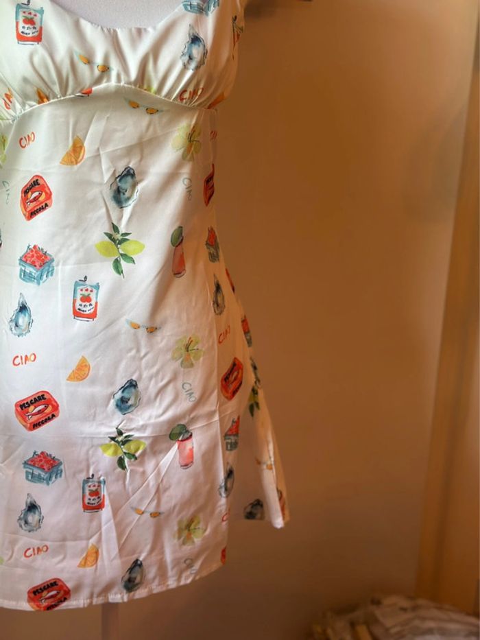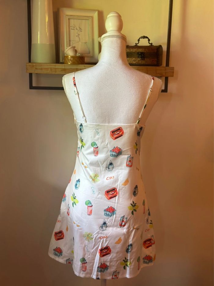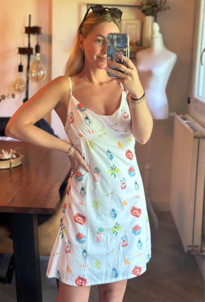 Robe courte blanche imprimée fruits & boissons – Taille S - photo numéro 4