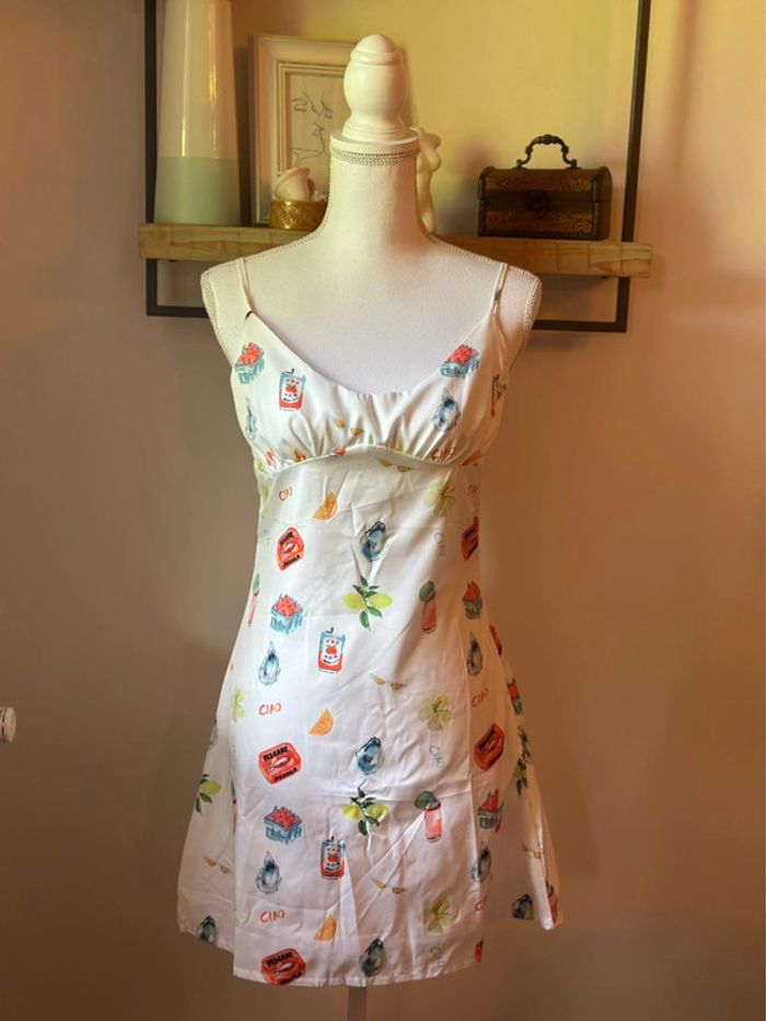 Robe courte blanche imprimée fruits & boissons – Taille S - photo numéro 1