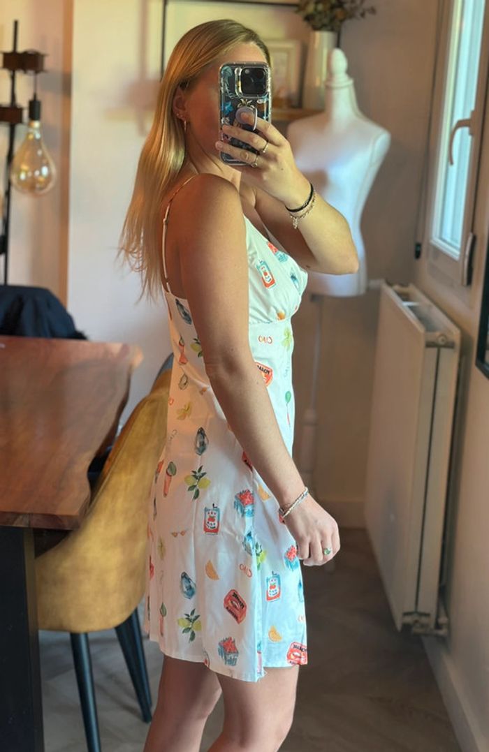 Robe courte blanche imprimée fruits & boissons – Taille S - photo numéro 5