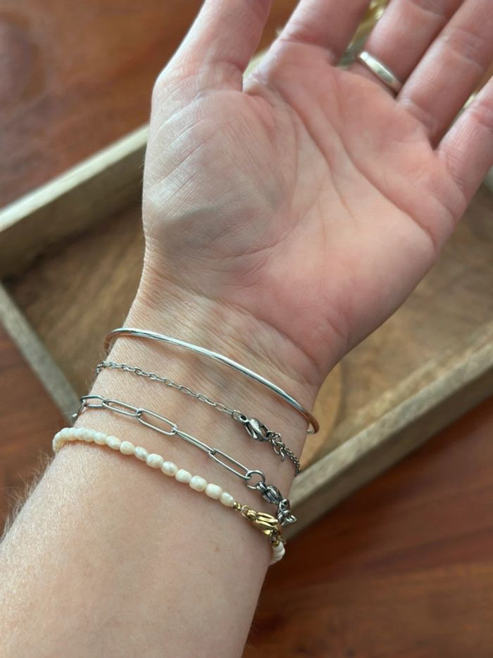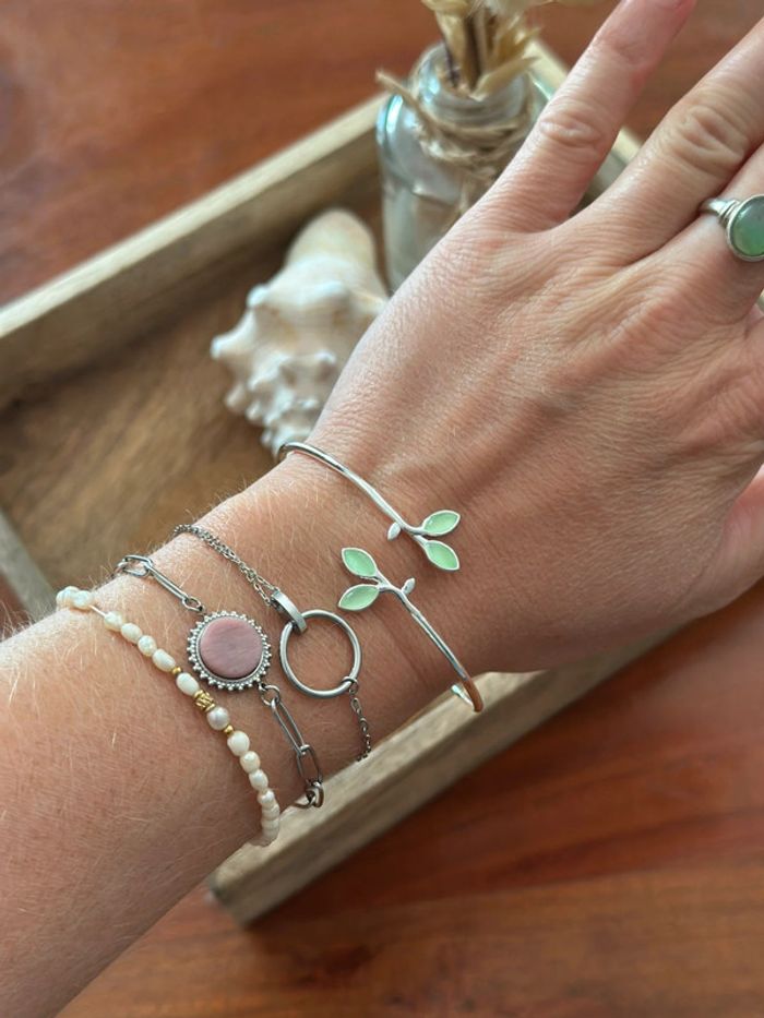 Bracelet jonc en argent 925 feuillage vert – Ajustable – Neuf - photo numéro 10