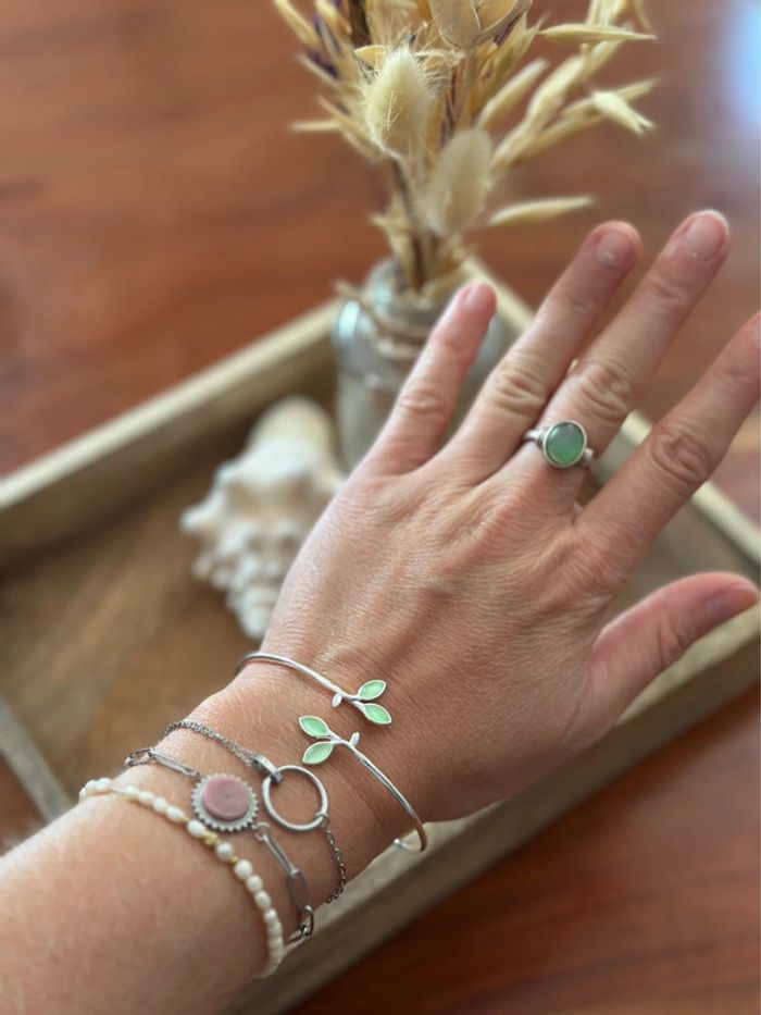 Bracelet jonc en argent 925 feuillage vert – Ajustable – Neuf - photo numéro 9