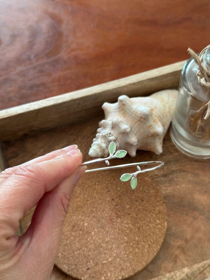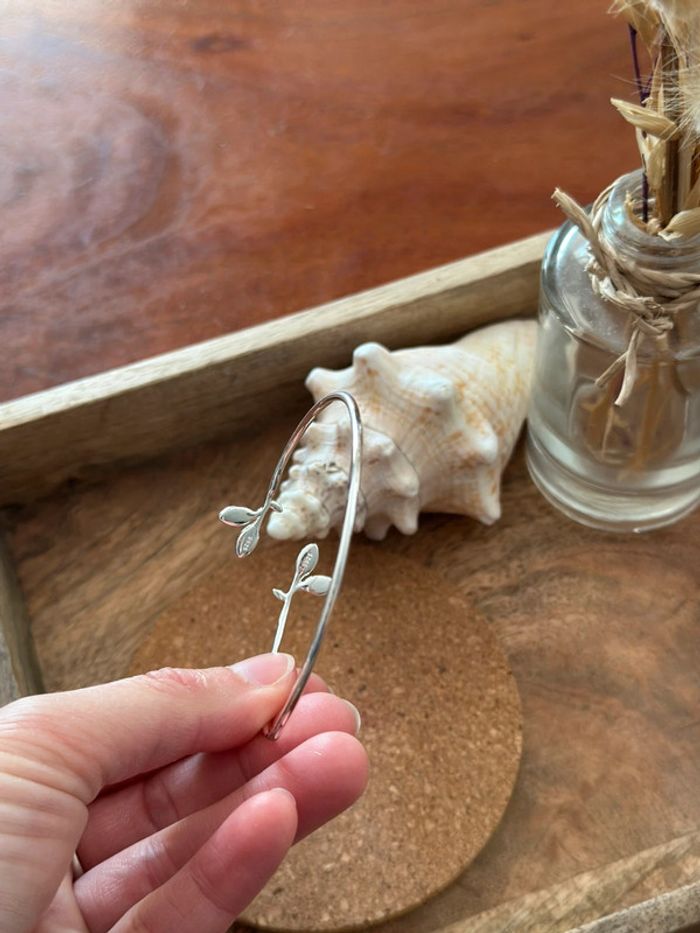 Bracelet jonc en argent 925 feuillage vert – Ajustable – Neuf - photo numéro 6