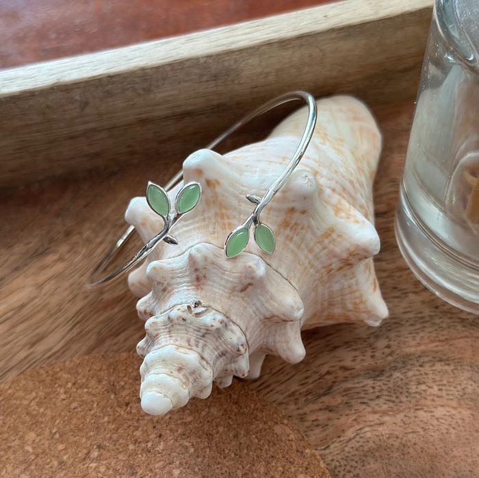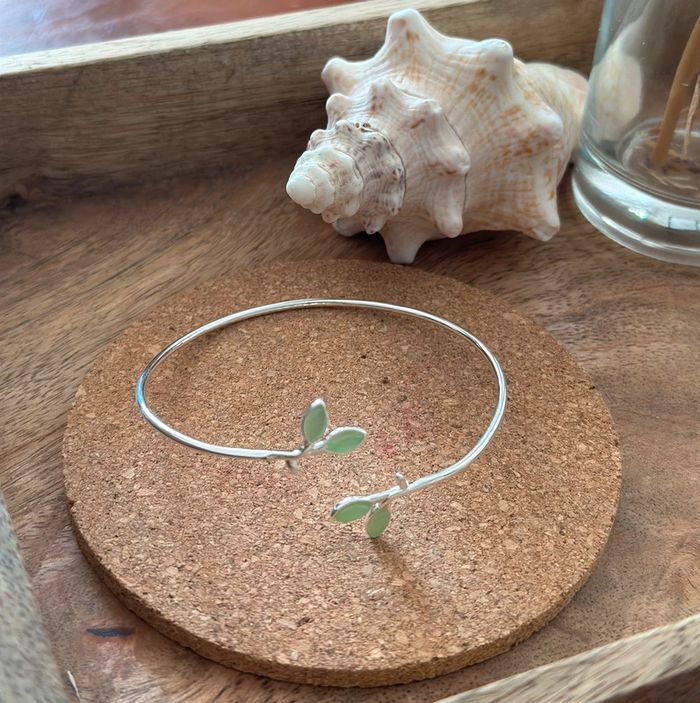 Bracelet jonc en argent 925 feuillage vert – Ajustable – Neuf - photo numéro 1