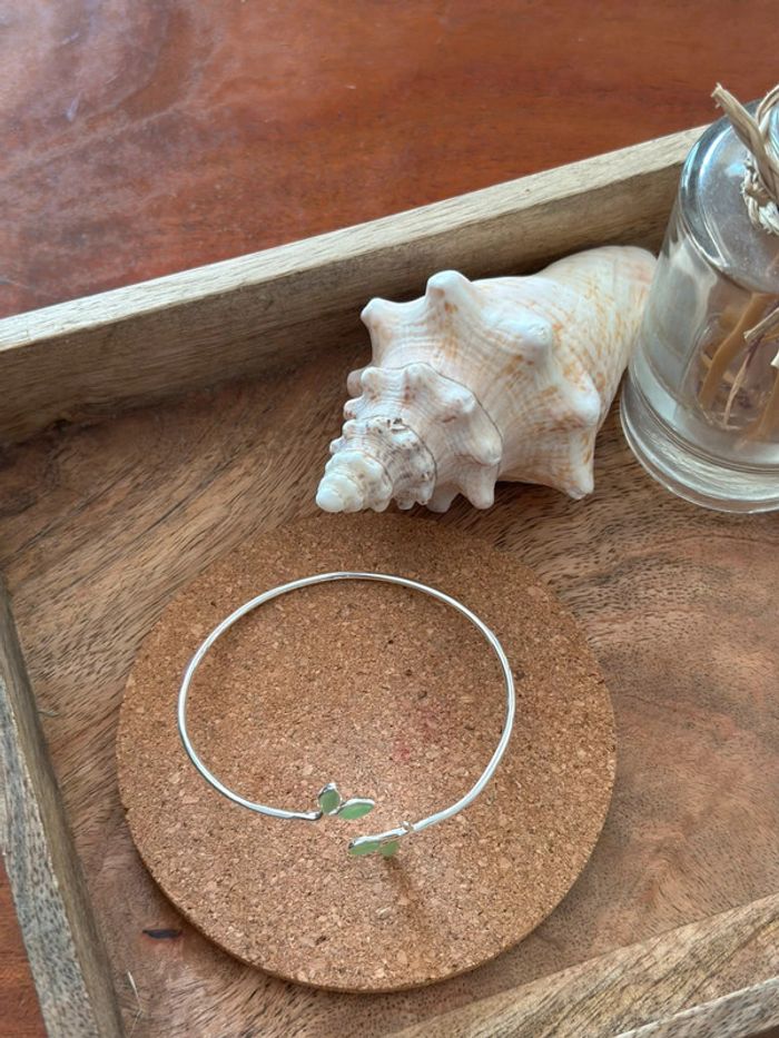 Bracelet jonc en argent 925 feuillage vert – Ajustable – Neuf - photo numéro 2