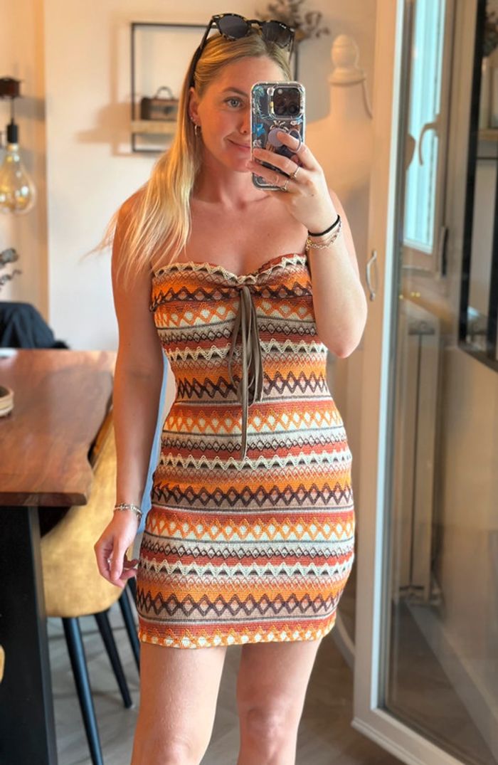 Robe bustier d’été motifs ethniques – Coloris orange & crème – Taille 36