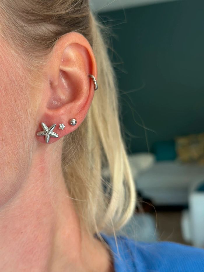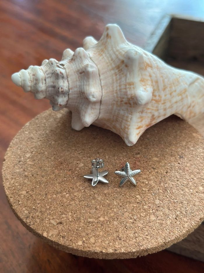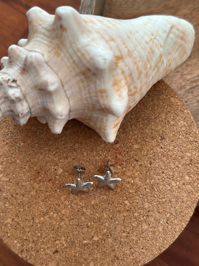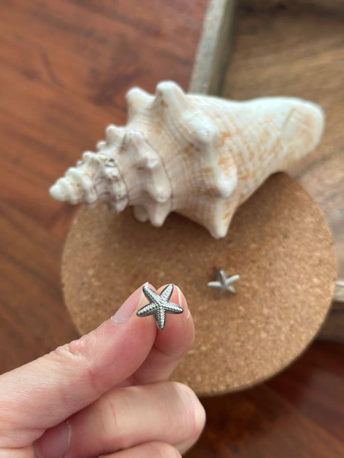 Belle paire de boucles d’oreilles en acier inoxydable, avec un motif étoile de mer. Très tendance. Neuves ! Mesurent environ 1 cm. Élégantes et discrètes.