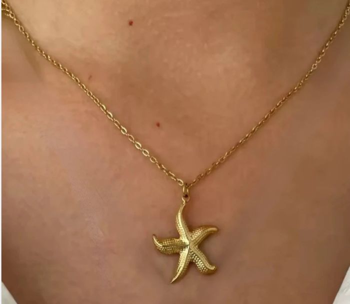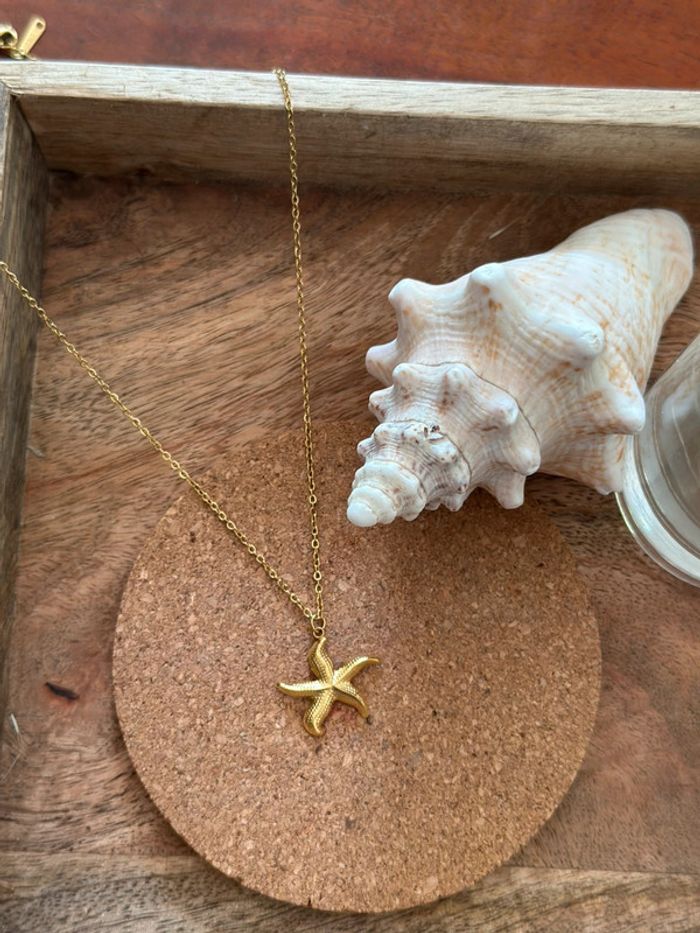 Collier doré étoile de mer – Acier inoxydable, neuf - photo numéro 2
