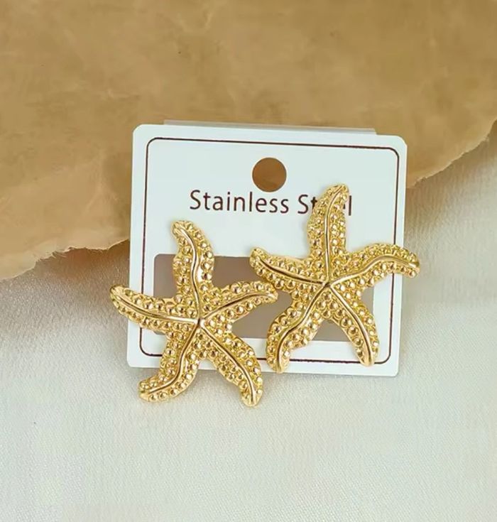 Boucles d’oreilles dorées en acier inoxydable, motifs étoile de mer, neuves