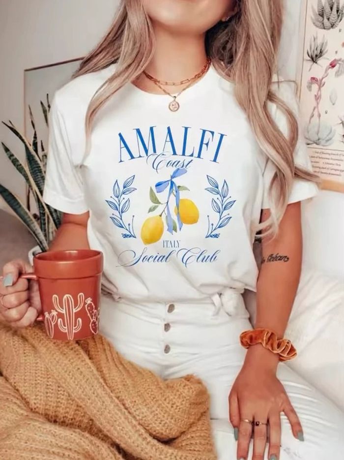 T-shirt en coton doux avec imprimé Amalfi Coast - Italie 🍋