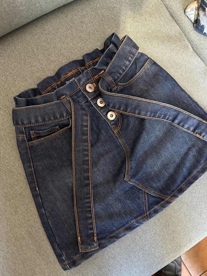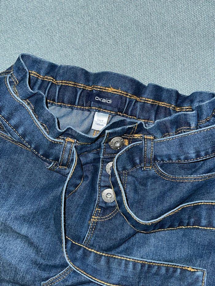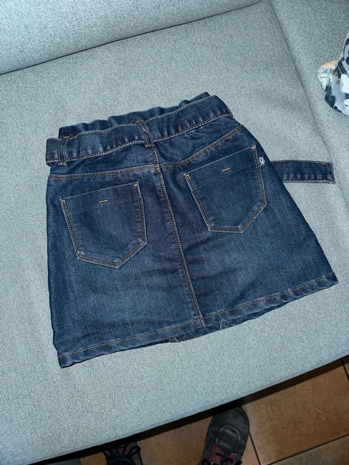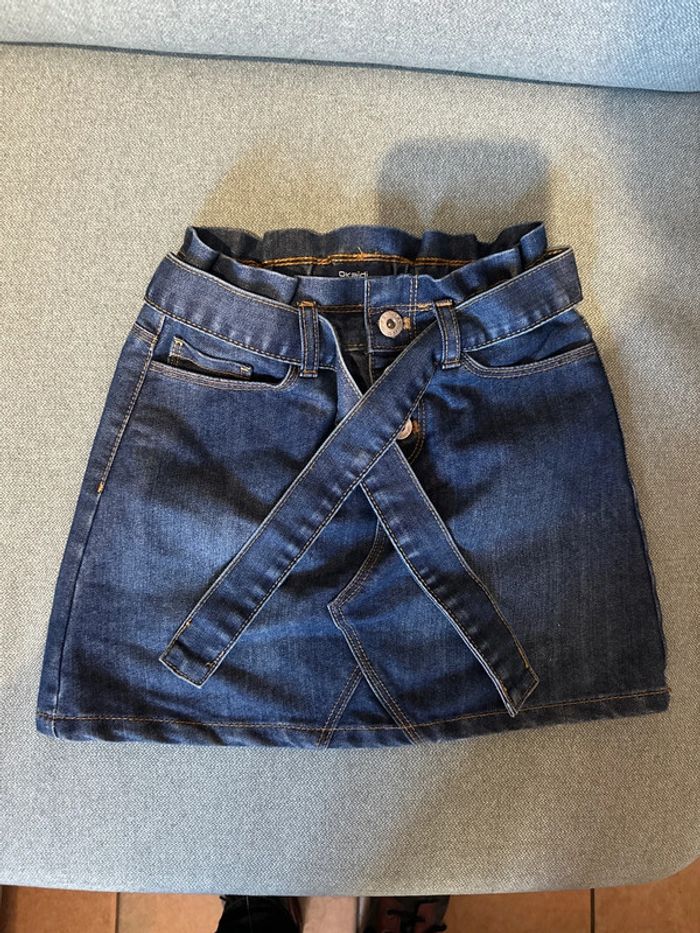 Jupe en jeans fille 8 ans Okaïdi Excellent état Très peu porté Ceinture à la taille + tour de taille réglable par élastique A