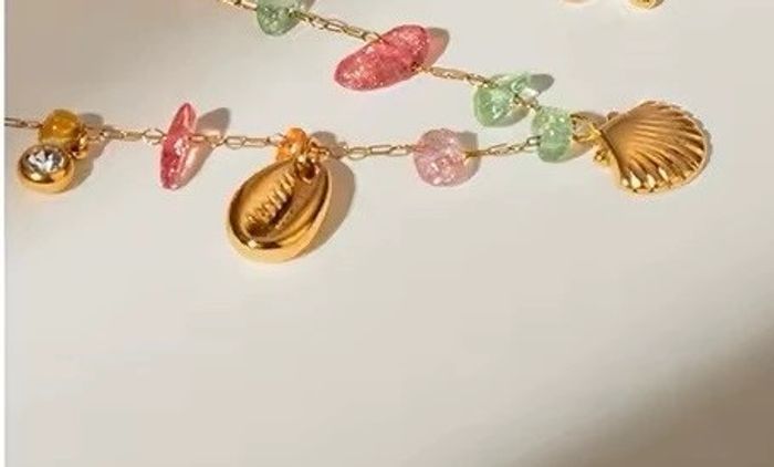 Bracelet fin doré en acier inoxydable avec pierres colorées et coquillages (neuf) - photo numéro 2