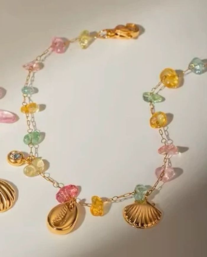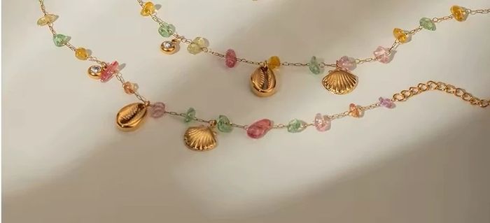 Bracelet fin doré en acier inoxydable avec pierres colorées et coquillages (neuf) - photo numéro 3