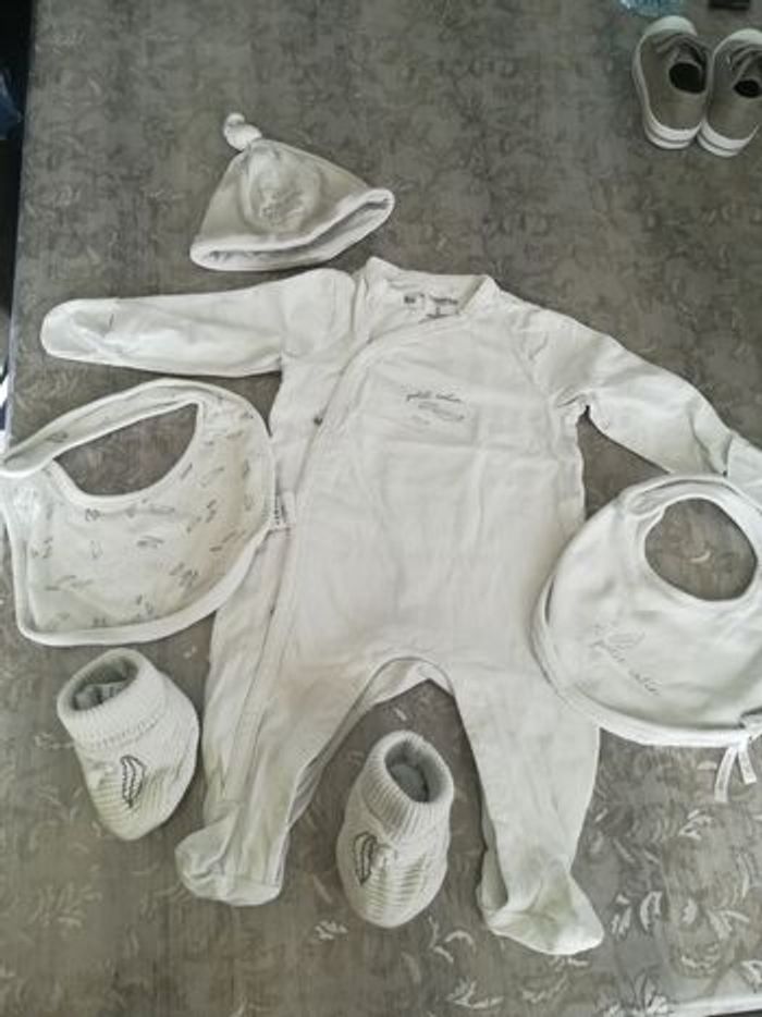 1 pyjama 2 bavoirs 1 bonnet de naissance 1 paire de chaussons
