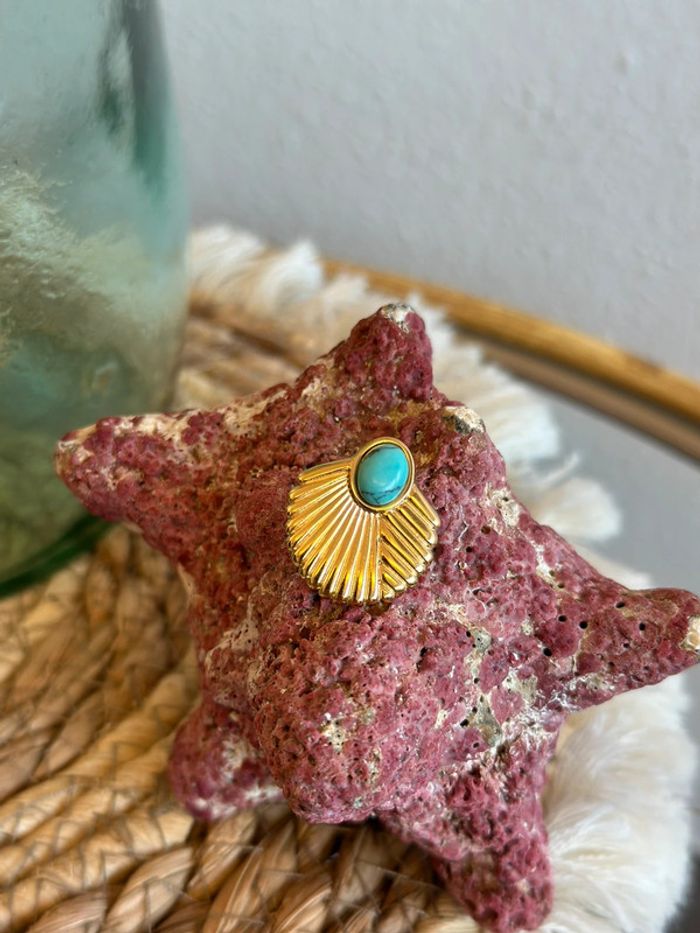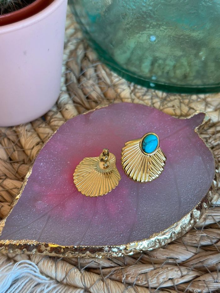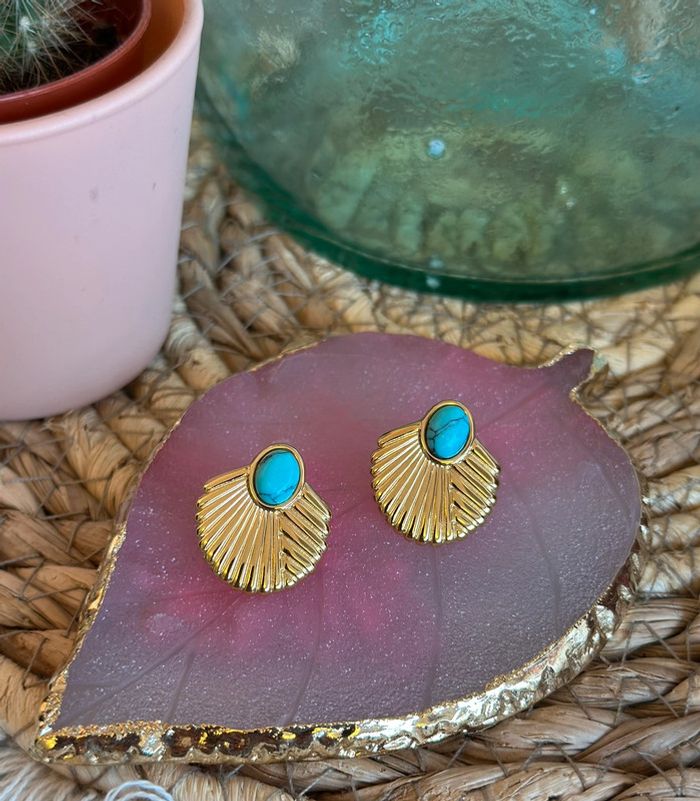Boucles d’oreilles coquillage en acier inoxydable et pierre bleue