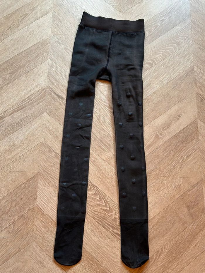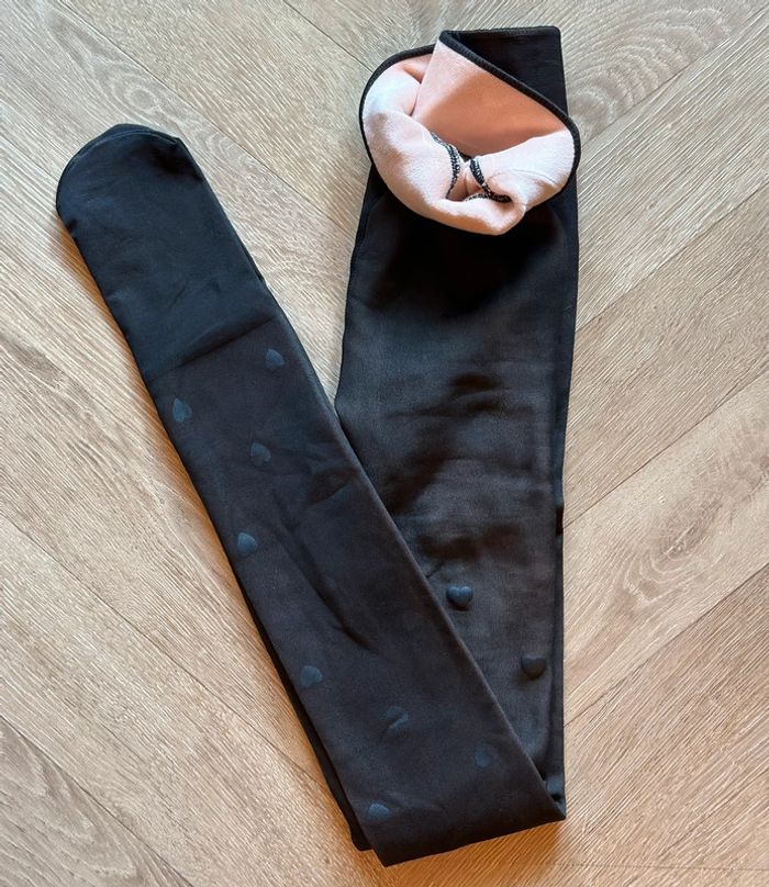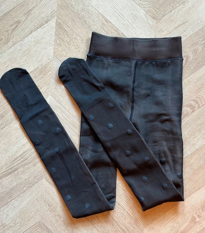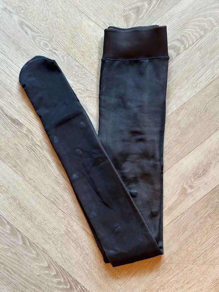 Collants molletonnés polaires chauds noirs en cœurs - Neufs S/M - photo numéro 4