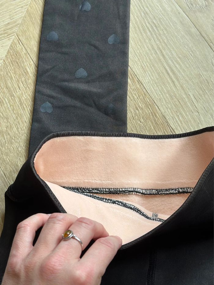 Collants molletonnés polaires chauds noirs en cœurs - Neufs S/M - photo numéro 6