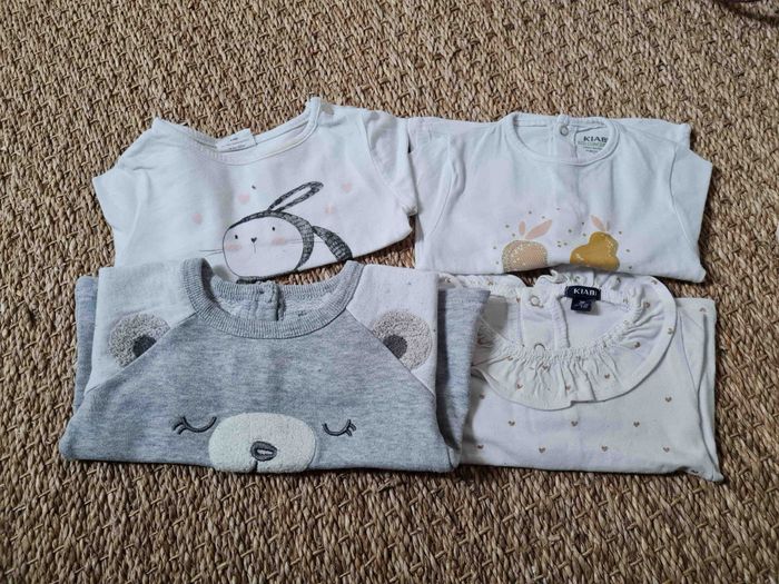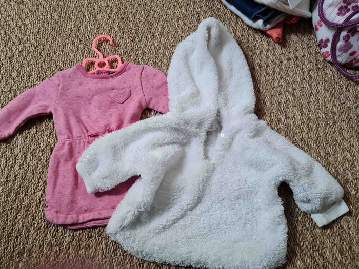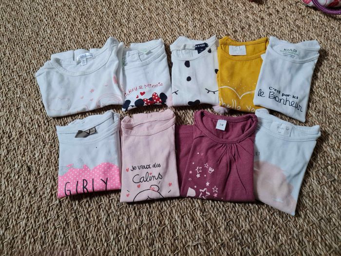 Bonjour je vend des vêtement bébé fille en 3 mois pas abîmé ni troué Il y a des pyjama, dody, tee-shirt manche longue et courtes, pantalon,leggings et veste Toutes les photos sont pas mise hésite pas à m'envoyer un message Hésite pas à demande les prix car je l'application on peut pas mettre plusieurs prix