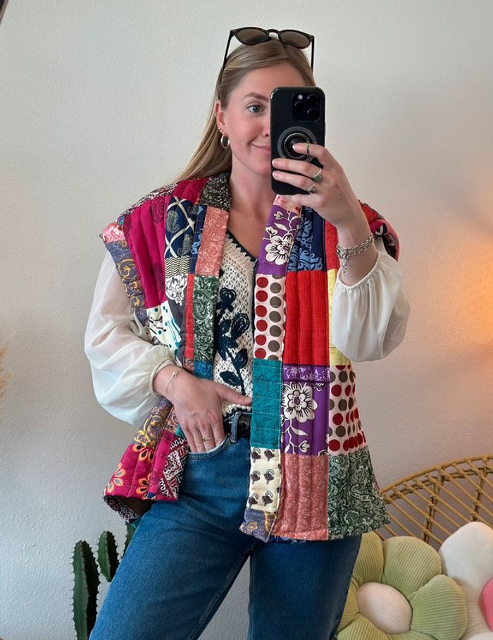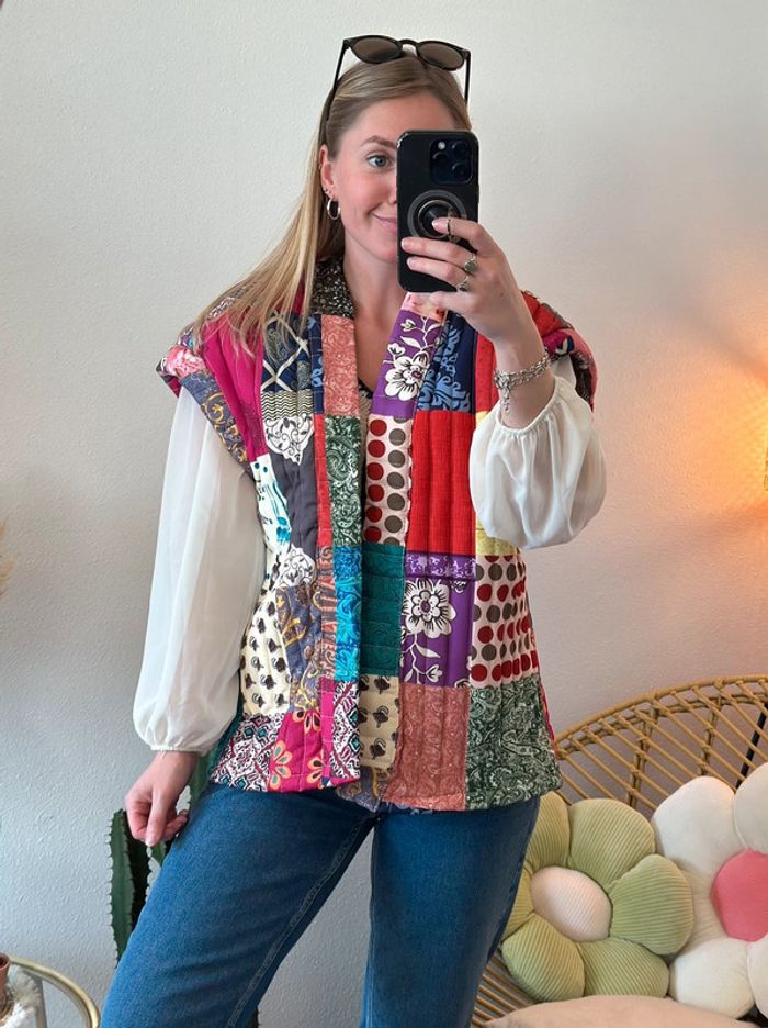 Gilet sans manches matelassé, patchwork coloré, taille U