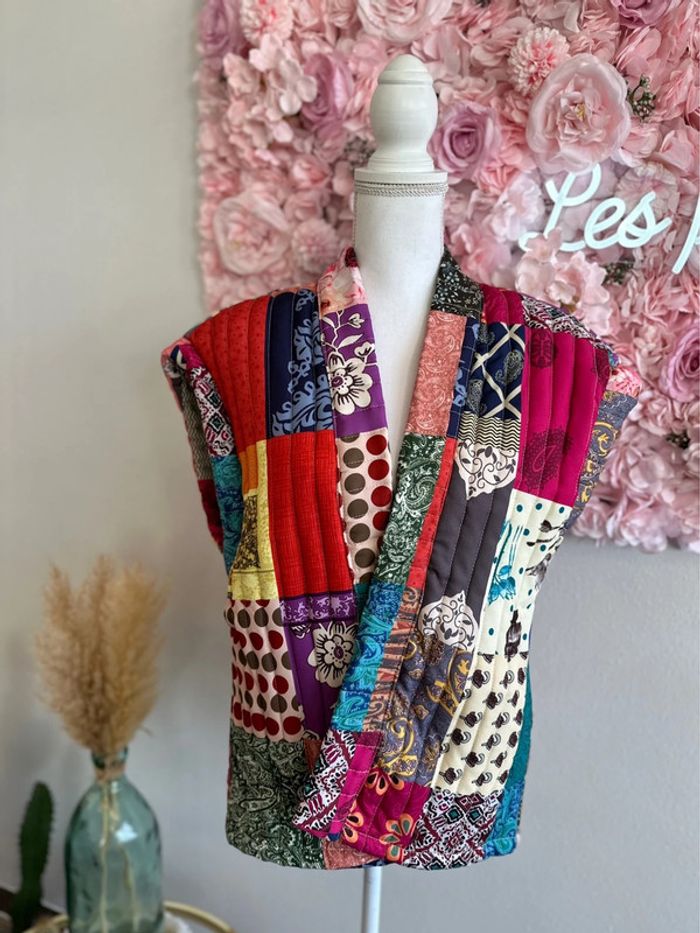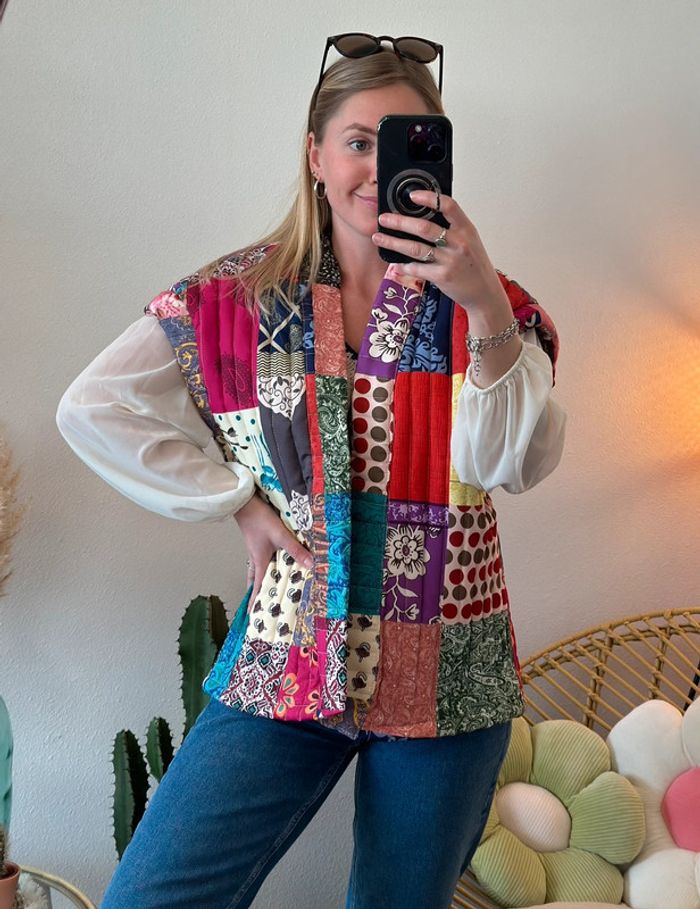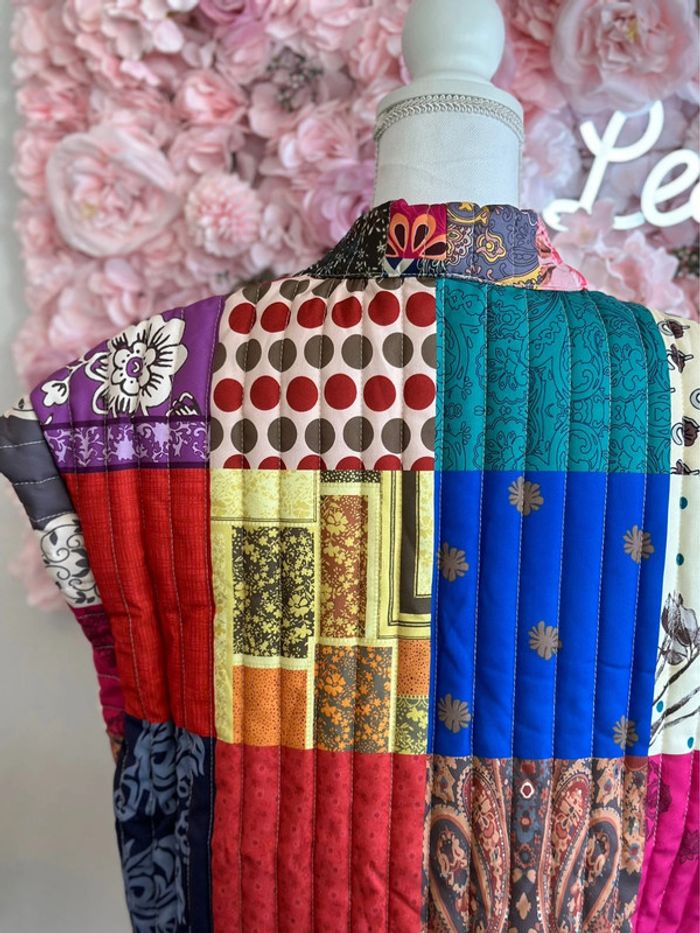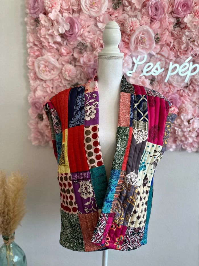 Gilet sans manches matelassé, patchwork coloré, taille U - photo numéro 1