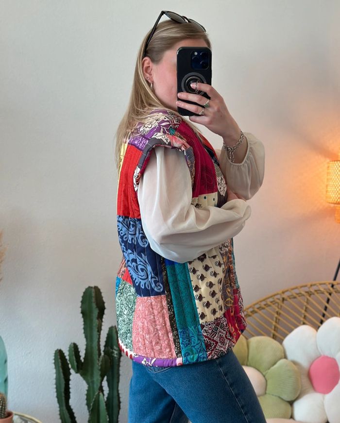 Gilet sans manches matelassé, patchwork coloré, taille U - photo numéro 10