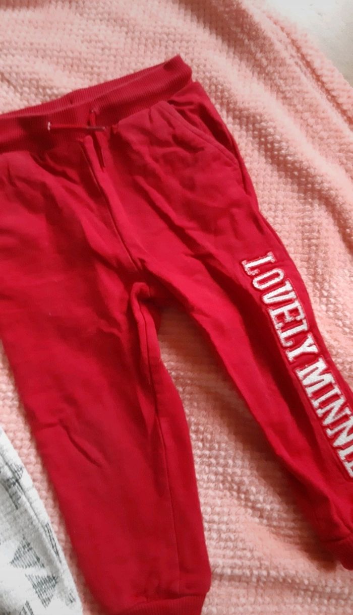 2 pantalons sarouel 1 zara, 1 orchestra Un training inscription Minnie Taille 18 mois