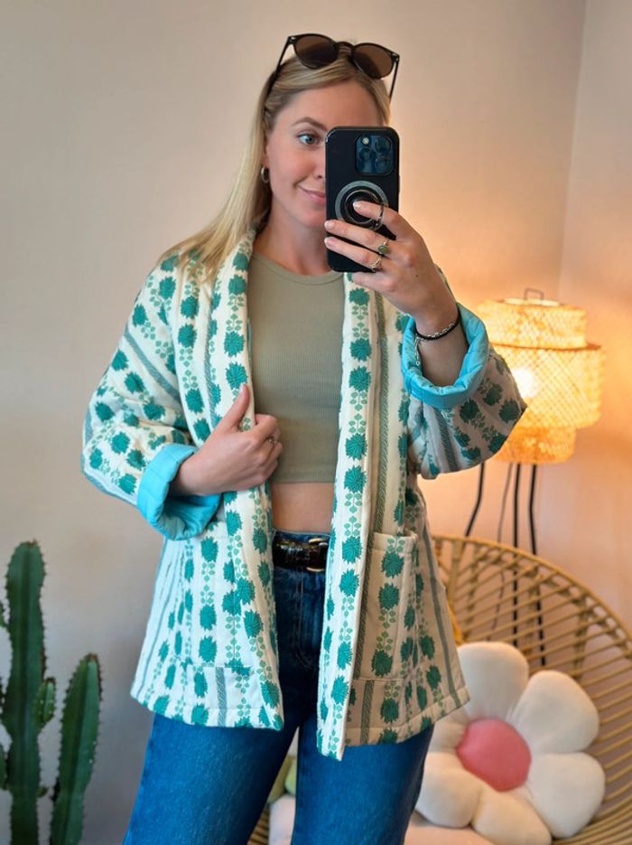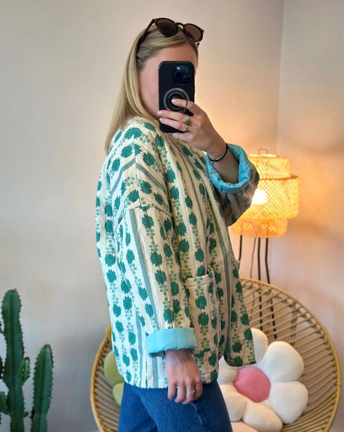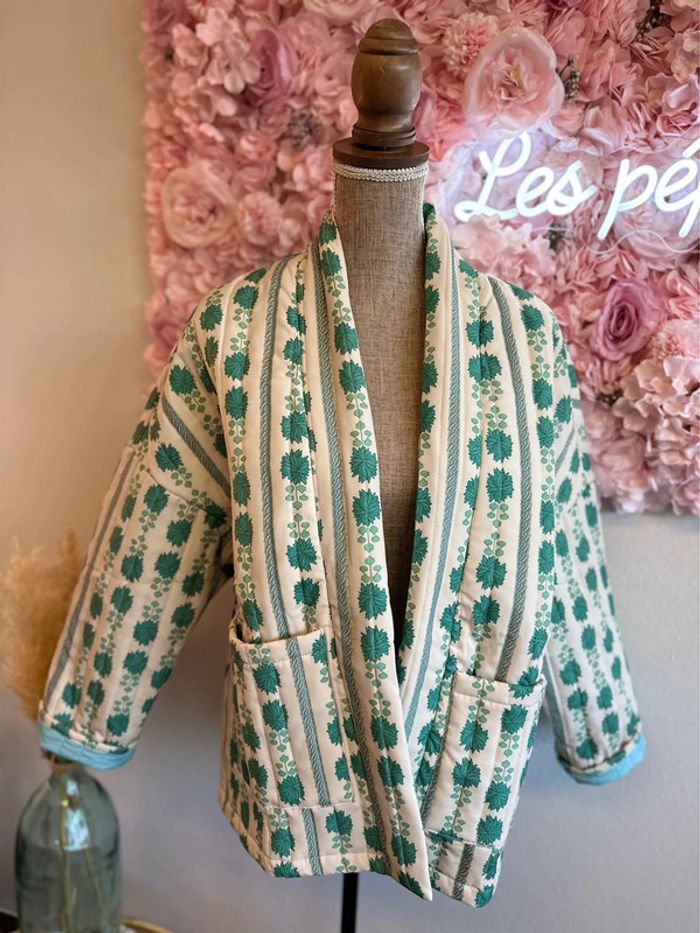 Veste matelassée patchwork à motifs verts, taille unique - photo numéro 3