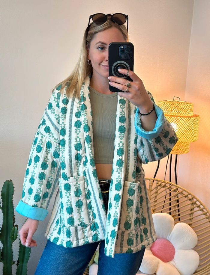 Veste matelassée patchwork à motifs verts, taille unique - photo numéro 7