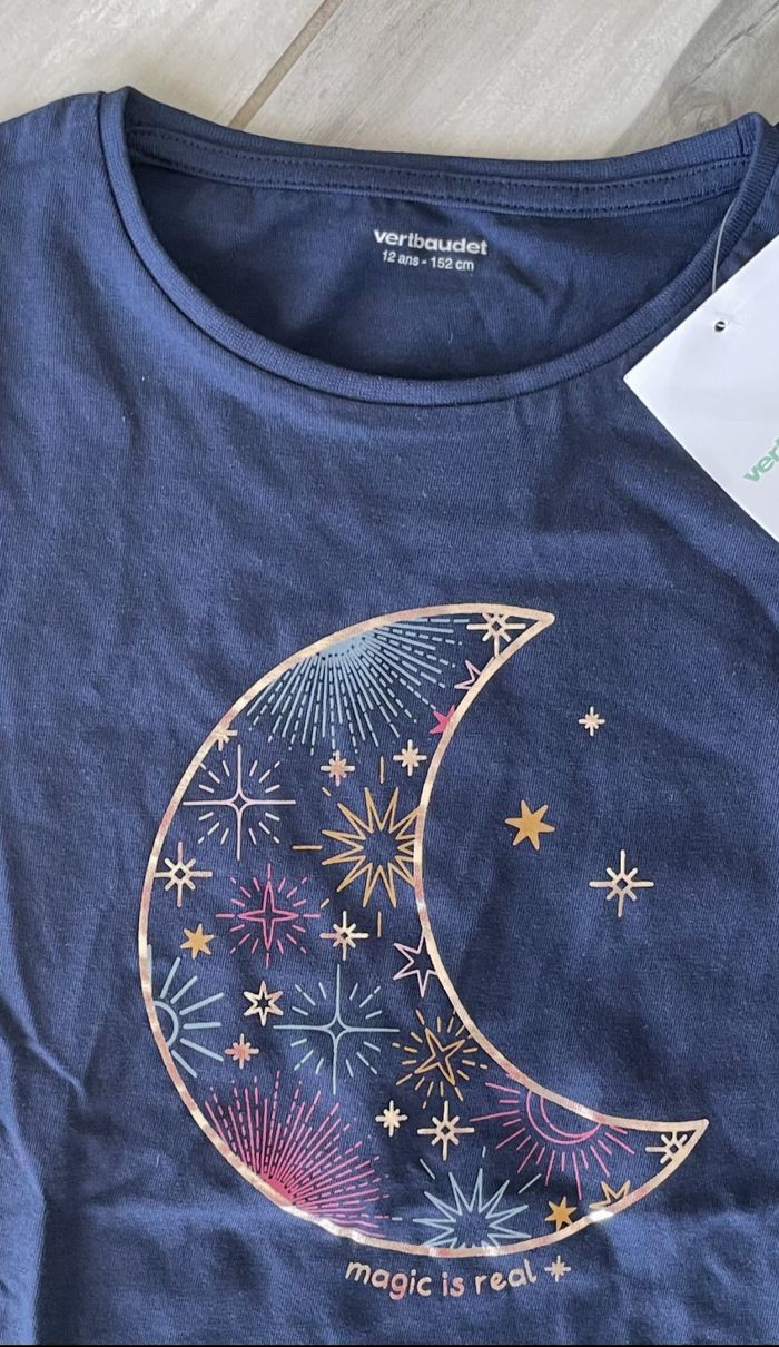 Beau Tee-Shirt T 12 ans Vert Baudet bleu marine avec dessin lune Neuf - photo numéro 8