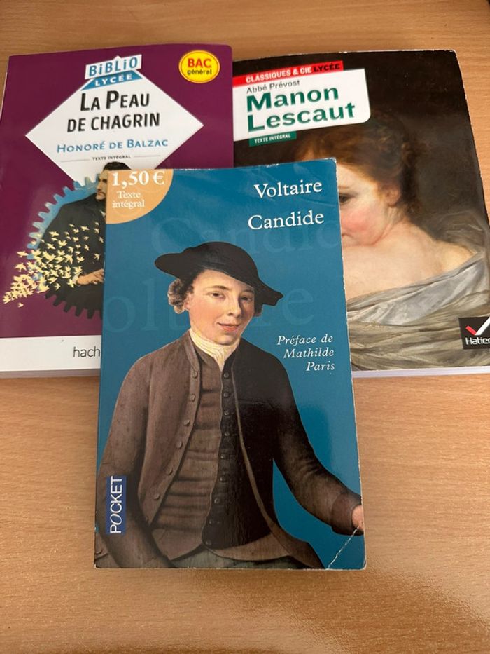 Lot de 3 romans : candide de voltaire Peau de chagrin de honore de balzac Manon Lescaut d’abbé Prevost Très bon état #lotsderomans #romans #roman #histoires #baccalauréat #francais