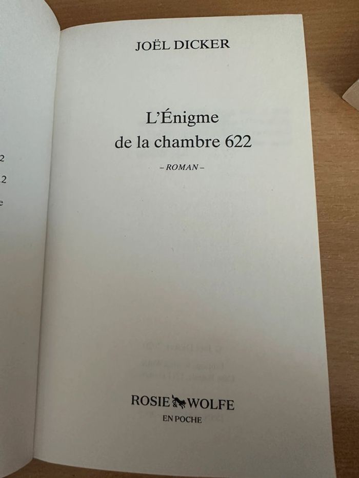 L’énigme de la chambre 622 Joël Dicker Édition Rosie Wolfe 💰Prix négociable 💰