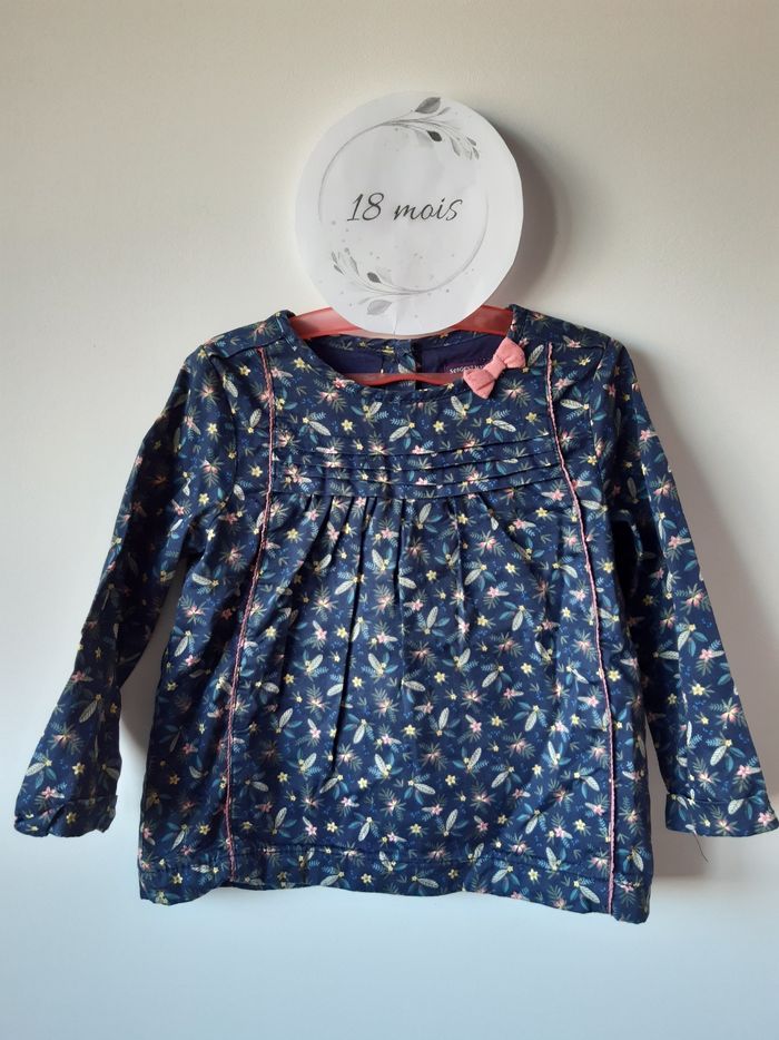 Haut manches longues Blouse Bébé fille 18 mois Sergent Major Bleu motifs fleurie 🌸 ⚘🌷🌻🌺🌹 Boutons au dos D'autres photos possible sur demande Merci de privilégier les envois par Mondial Relay