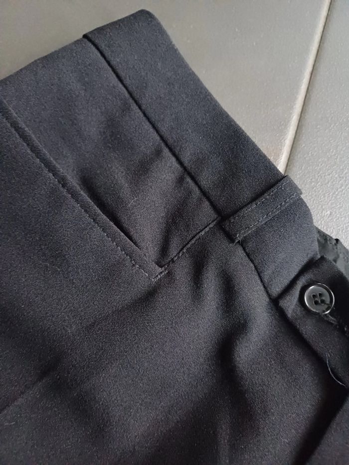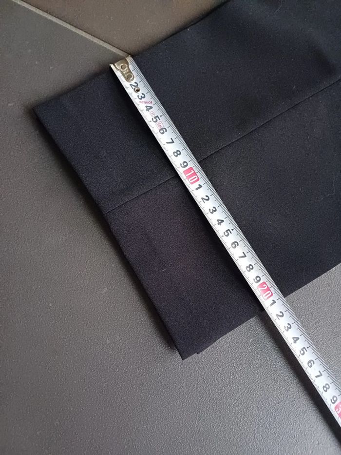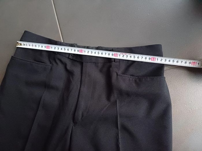 Taille L Longueur 1.1m, entrejambe 71cm, tour de taille pantalon fermé 43cm, largeur bas pantalon 21cm. Le mannequin mesure 1m75.