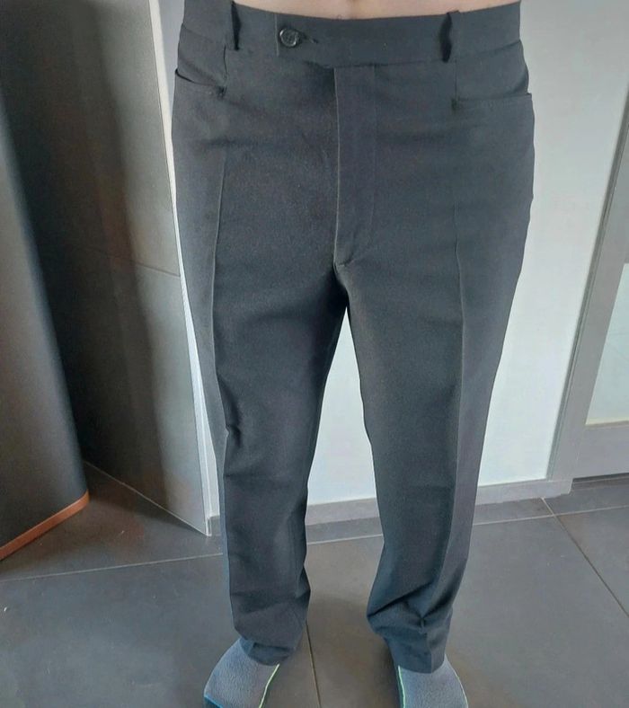 Taille L Longueur 1m, entrejambe 75cm, tour de taille pantalon fermé 46cm, largeur bas pantalon 24cm. Le mannequin mesure 1m75.
